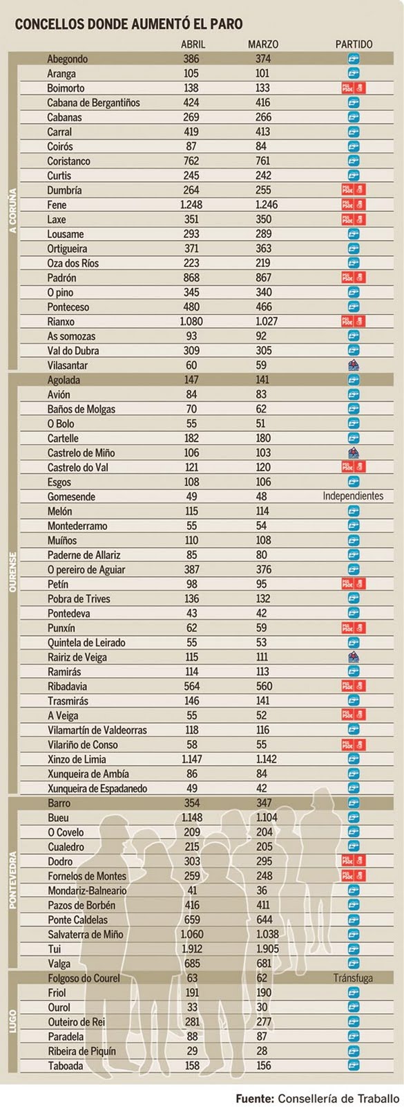 Parece que a promesa de acabar co paro en Galicia en 45 dias ó Sr. Feijoo xa a ten mais que atragantada, por desgracia para todos os Galegos e Galegas.