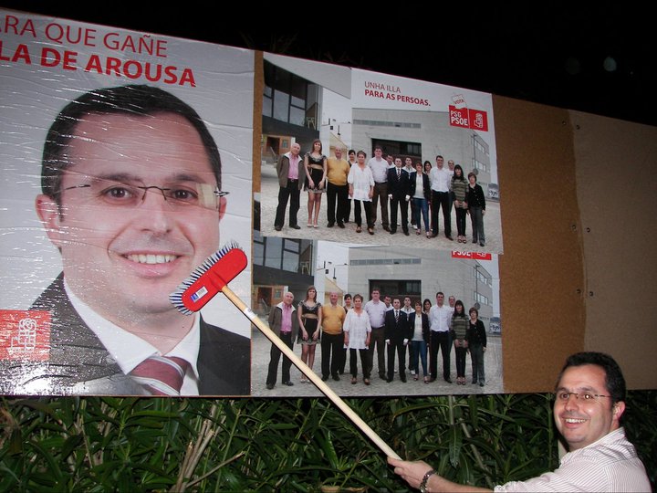 Esta noite comezou oficialmente a campaña para as Eleccións Municipais do dia 22 de Maio, e o PSdeG-PSOE de A Illa de Arousa armouse de cepillos e cola e iniciou a pegada de carteis electorais comezando pola céntrica Praza do Regueiro.